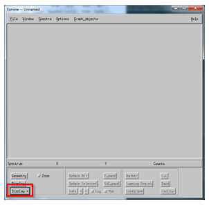 The status bar at the bottom of the tree gui should show that it is connect and processing events at this point. The next thing to do is move to the Xamine window and display our histogram. The bottom left corner of the Xamine window has a button labeled "Display+".